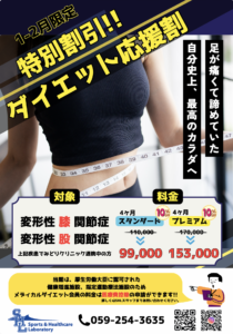 また1~2月は当院に膝、股関節の変形性疾患で通運治療されている方限定