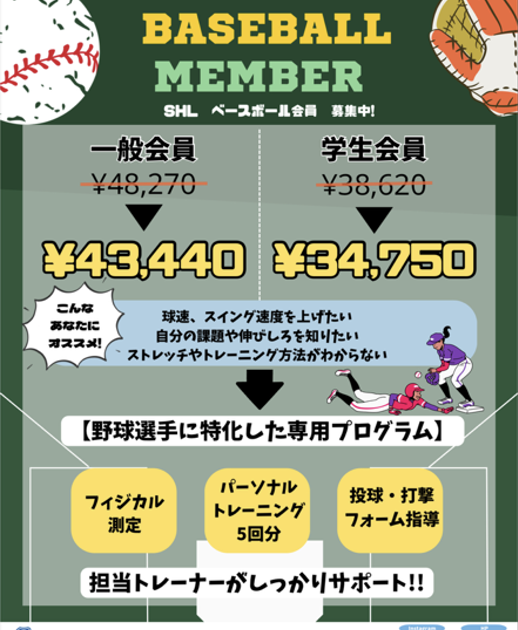 徐々にベースボール会員で入会される方が増えています。